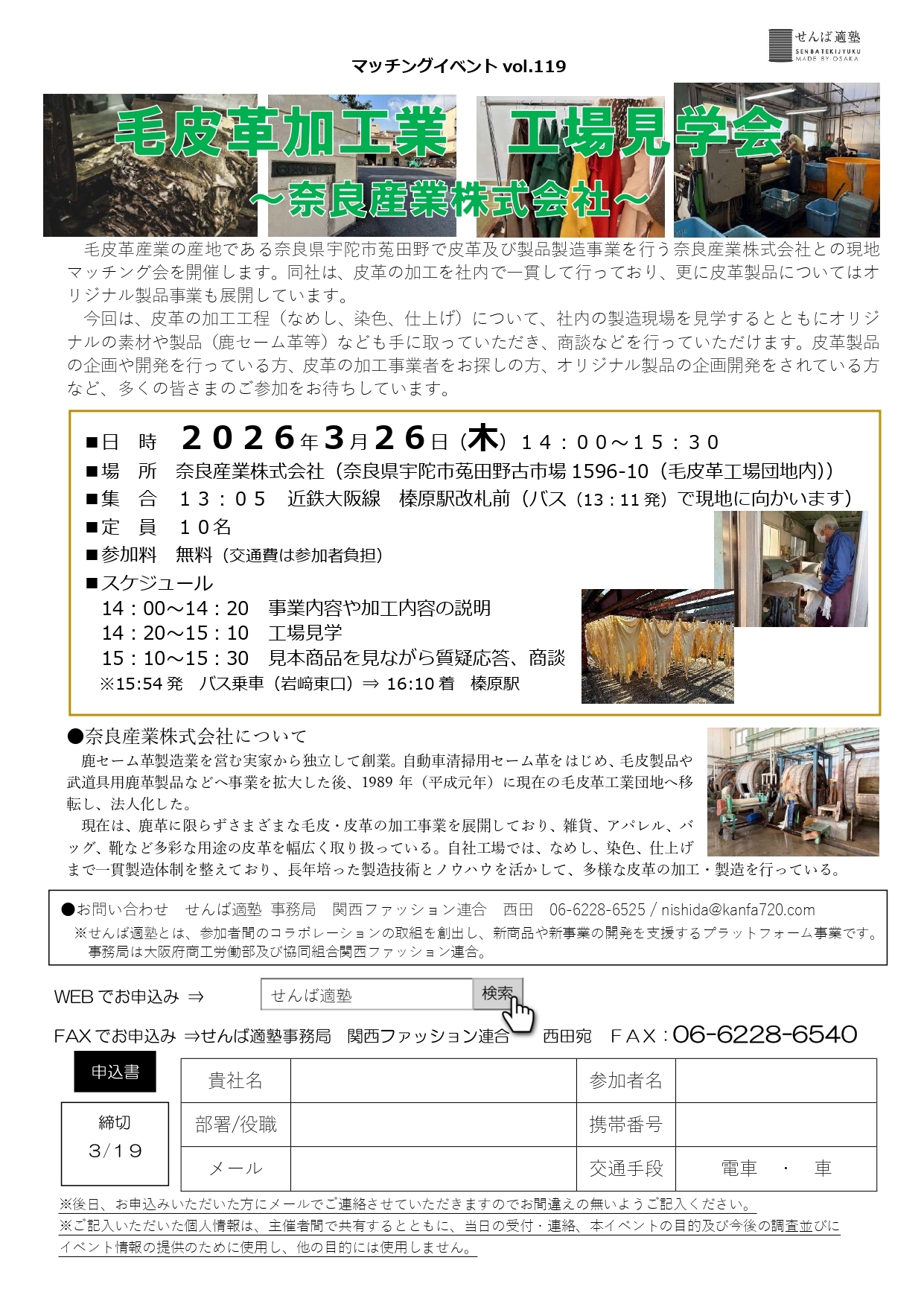 | 場所 | 奈良産業株式会社(奈良県宇陀市菟田野古市場1596-10(毛皮革工場団地内)) |